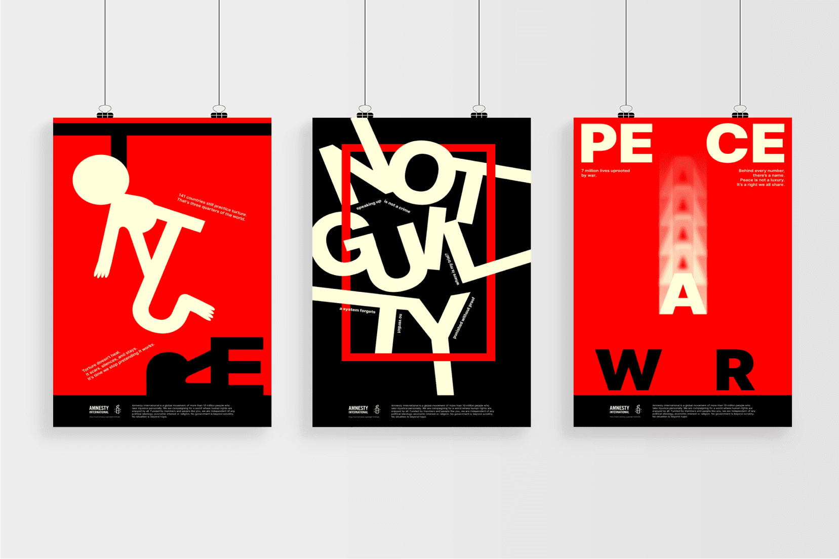 Amnesty poster designs for a more peaceful world - no more torture, detention, or war.